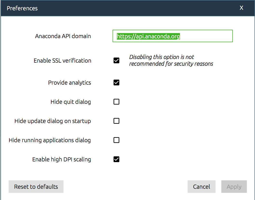 如果您是 Anaconda Enterprise 订阅者,则可以将 Navigator 配置为在本地 Anaconda 存储库中搜索包,而不是在Anaconda.org上进行搜索。